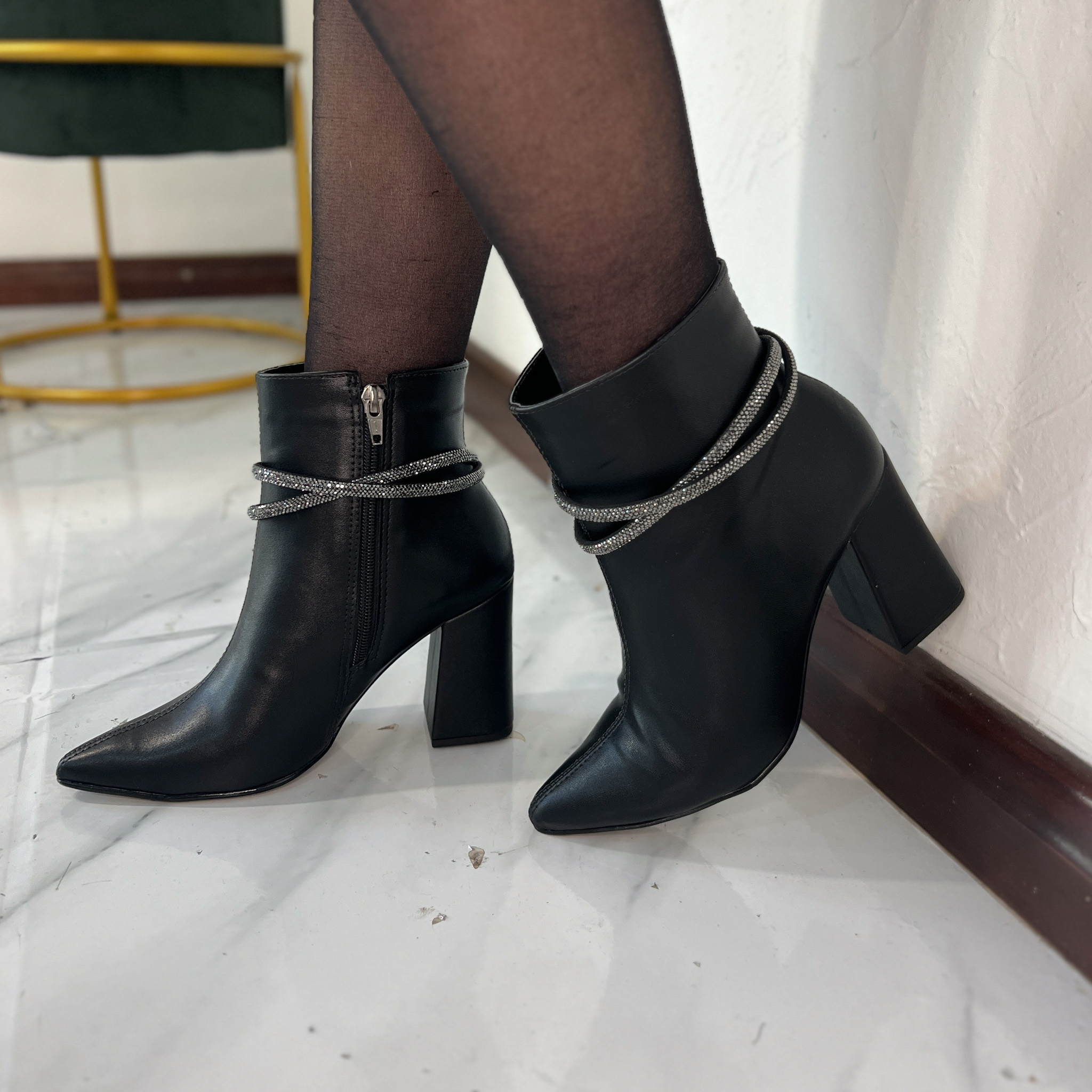 A bota coringa com cano curto, bico e salto grosso surge ainda mais irresistível nessa versão com acabamento minimalista e detalhes com a fivela de brilho. Use com vestidos que vão do midi ao míni comprimento, minissaias, jeans reto cropped, peças de alfaiataria… Seja qual for sua escolha, o resultado é sempre uma produção sofisticada e estilosa! Fivela removível.