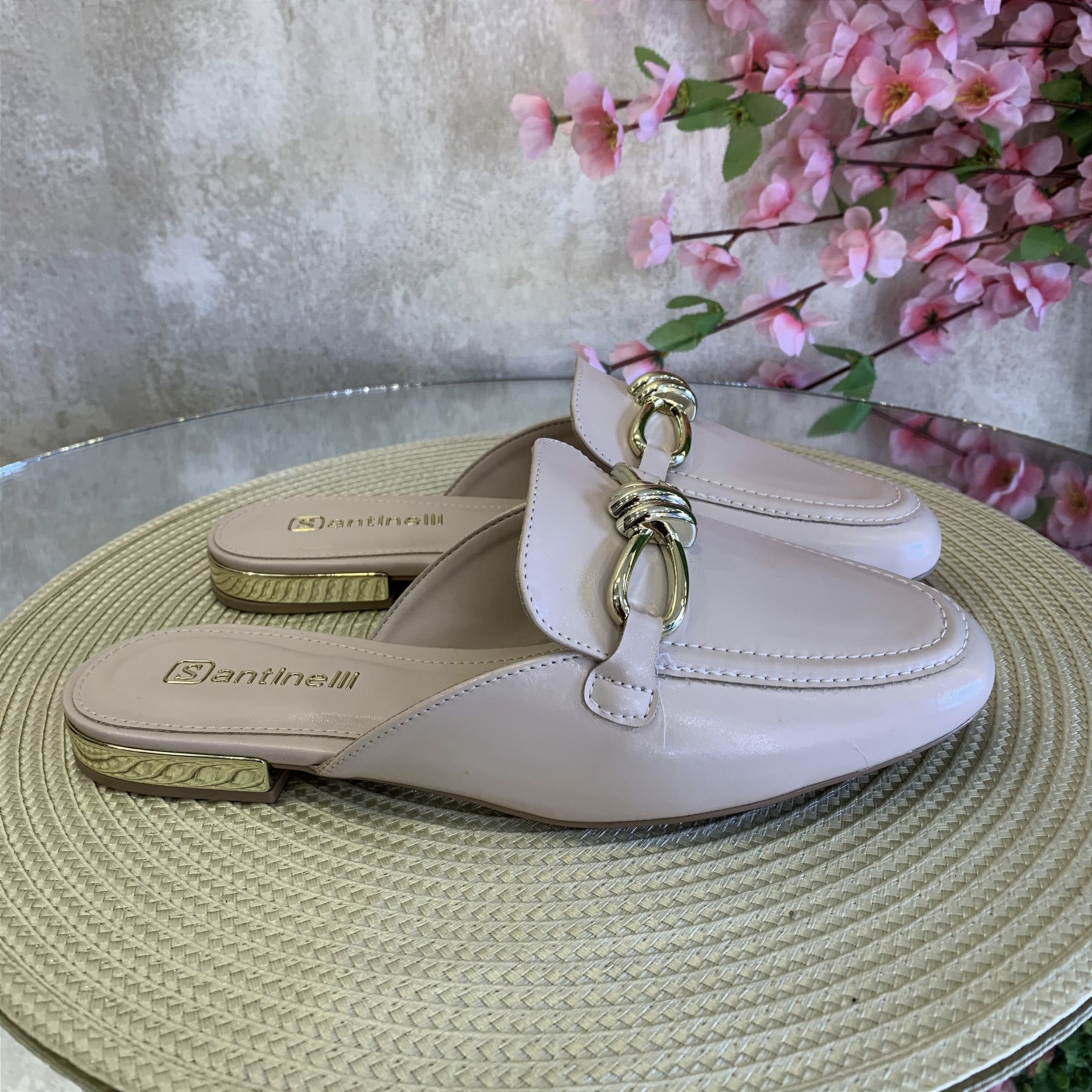 Mule: um toque de glamour com detalhes. Esta mule combina elegância e sofisticação, adicionando um toque de glamour ao seu visual. Perfeito para quem busca estilo e conforto.